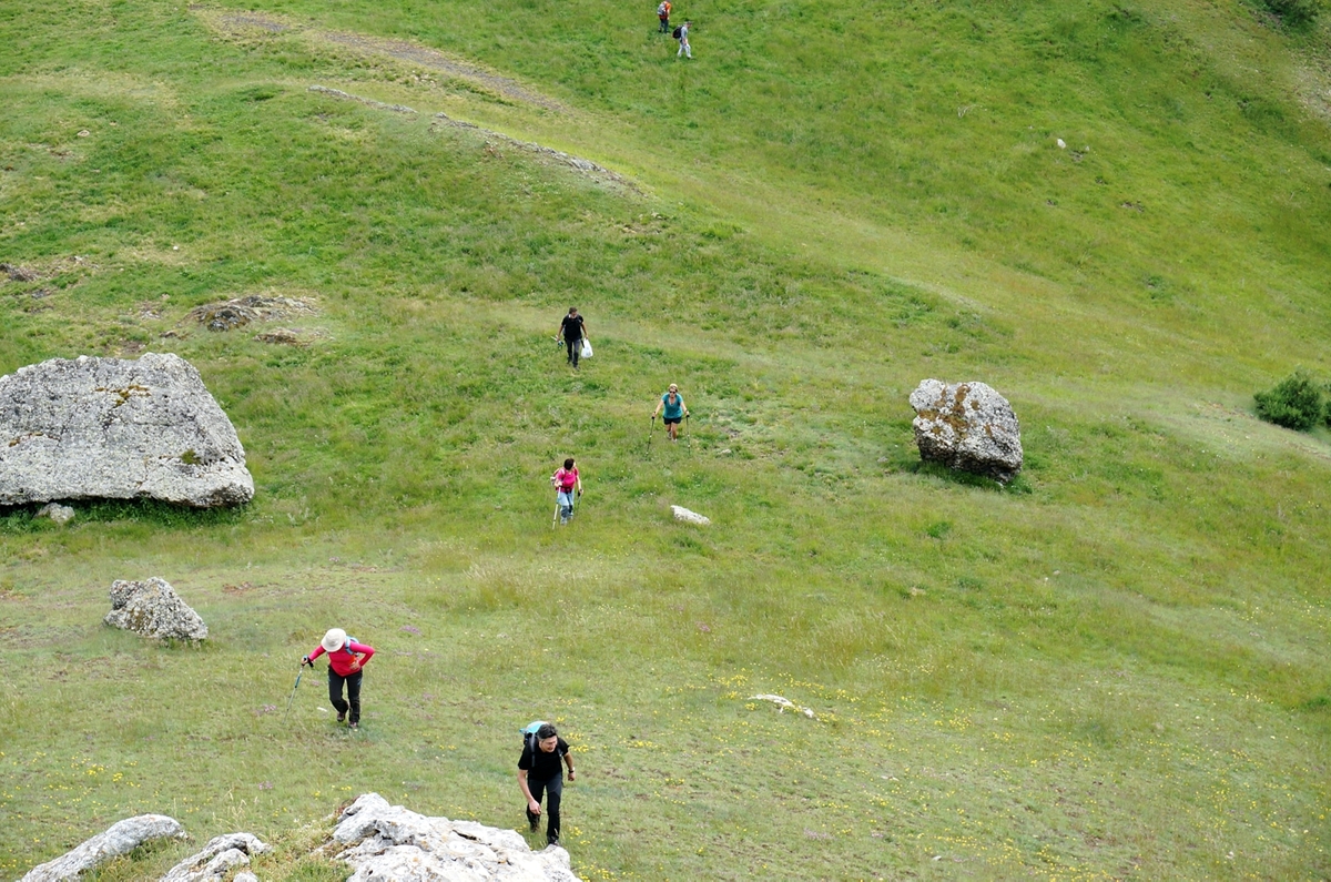 En el collado, el grupo se dividió en dos. Unos subieron a